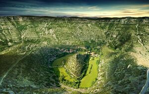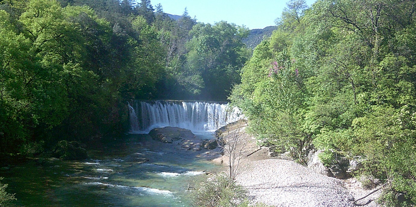 Voilà sans doute le plus surprenant des sites naturels à cheval entre Gard et Hérault. Lorsqu’on découvre le Cirque de Navacelles pour la première fois, c’est son immensité qui marque, ce volume incroyable laisse bouche bée. C’est d’autant plus marquant que l’arrivée aux belvédères de Blandas (Gard) et de la Baume Auriol (Hérault) se fait en traversant les vastes étendues des plateaux caussenards arides. Ici, la rivière Vis a creusé son lit dans le calcaire des causses du Larzac et de Blandas, formant de vastes et sinueux méandres. Au fil du temps, le remplissage de l'ancien méandre par les tufs calcaire a dévié le cours de la Vis, lui permettant ainsi de déborder et prendre le chemin le plus court qu'on lui connaît aujourd'hui, et de former une belle cascade. Elle a abandonné son ancien lit, et libéré le méandre que l'on voit à nos pieds constitué de travertin. Quel spectacle lors de la descente au fond du cirque vers le village de Navacelles, quel contraste entre l’aridité du sommet des causses et le fond du cirque verdoyant auprès de la cascade, 300 mètres en contrebas ! La visite du village et ses ruelles s’impose.